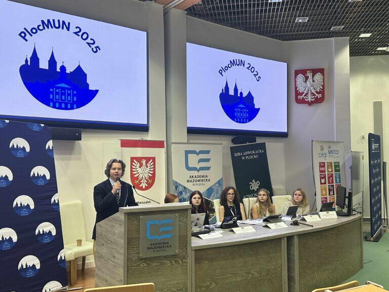 W dniach 6–8 czerwca 2025 r. Akademia Mazowiecka w Płocku ponownie stała się gospodarzem prestiżowego wydarzenia o międzynarodowym zasięgu – ósmej edycji konferencji Płock Model United Nations (PlocMUN). Wydarzenie to, będące symulacją obrad Organizacji Narodów Zjednoczonych, co roku przyciąga młodych liderów z Polski i zagranicy, umożliwiając im debatowanie nad najważniejszymi wyzwaniami współczesnego świata.